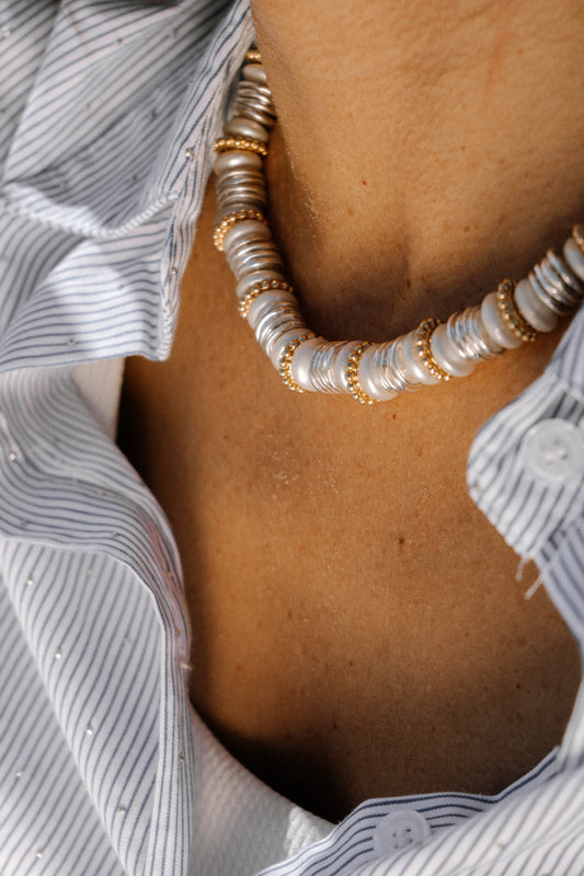 SCARLETT gold and silver plated beads with cultured pearls choker