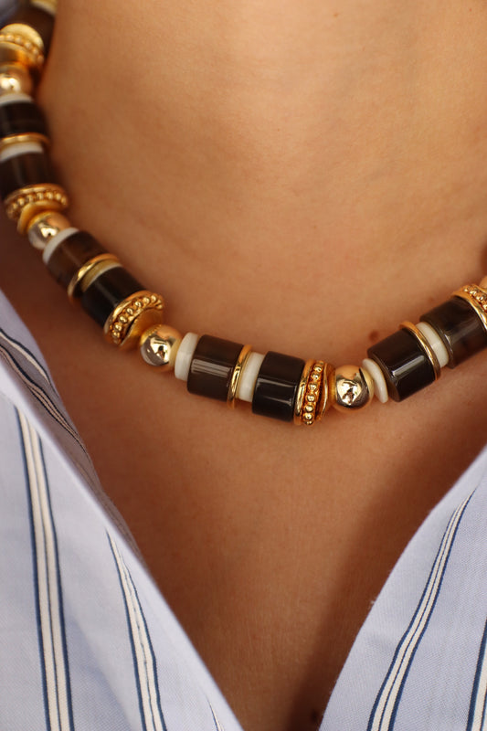 BLACK VENDOME MULTIPLE ONYX BEADS NECKLACE