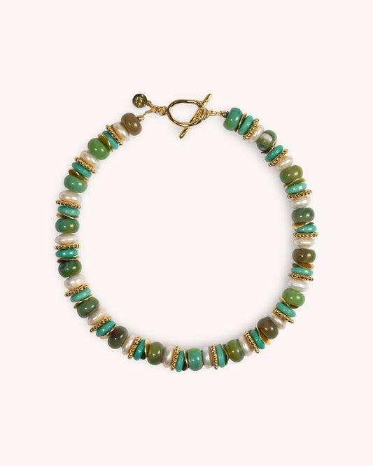 SCARLETT gold and silver plated beads with cultured pearls choker