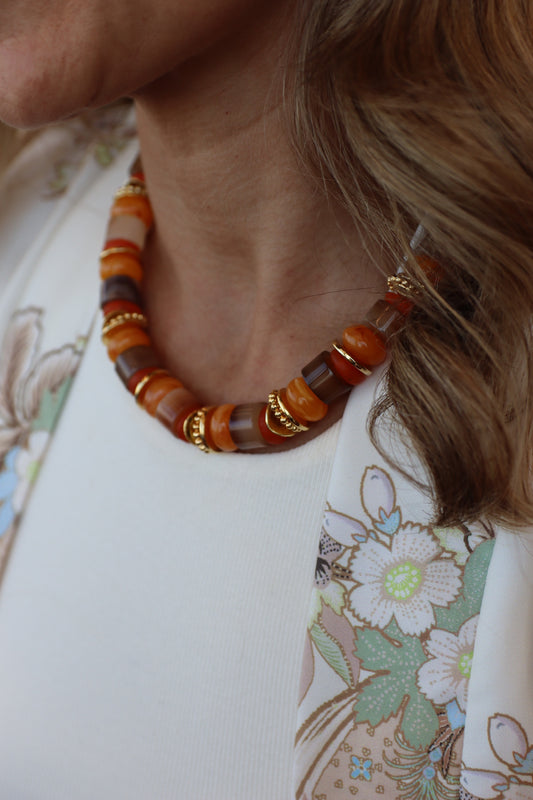 CLEA LIGHT BROWN AGATE AND ORANGE BEADS CHOKER