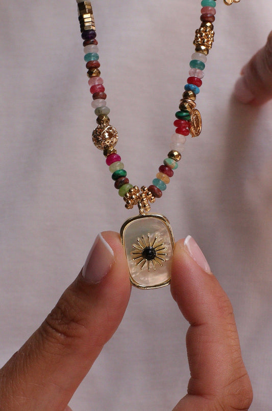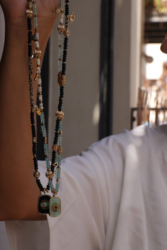 A collection that combines refinement and simplicity. Delicate and thoughtfully designed choker necklaces featuring charms in various shapes, some adorned with mother-of-pearl, others with sparkling gemstones. Perfect to wear for any occasion.