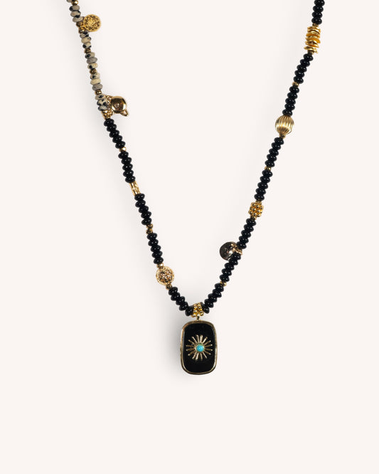 SOLEA YELLOW JASPE BEADS AND GOLD-PLATED CHARMS NECKLACE