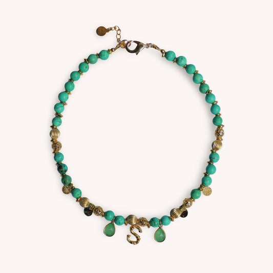OCEAN TURQUOISE MONOGRAM charms necklace